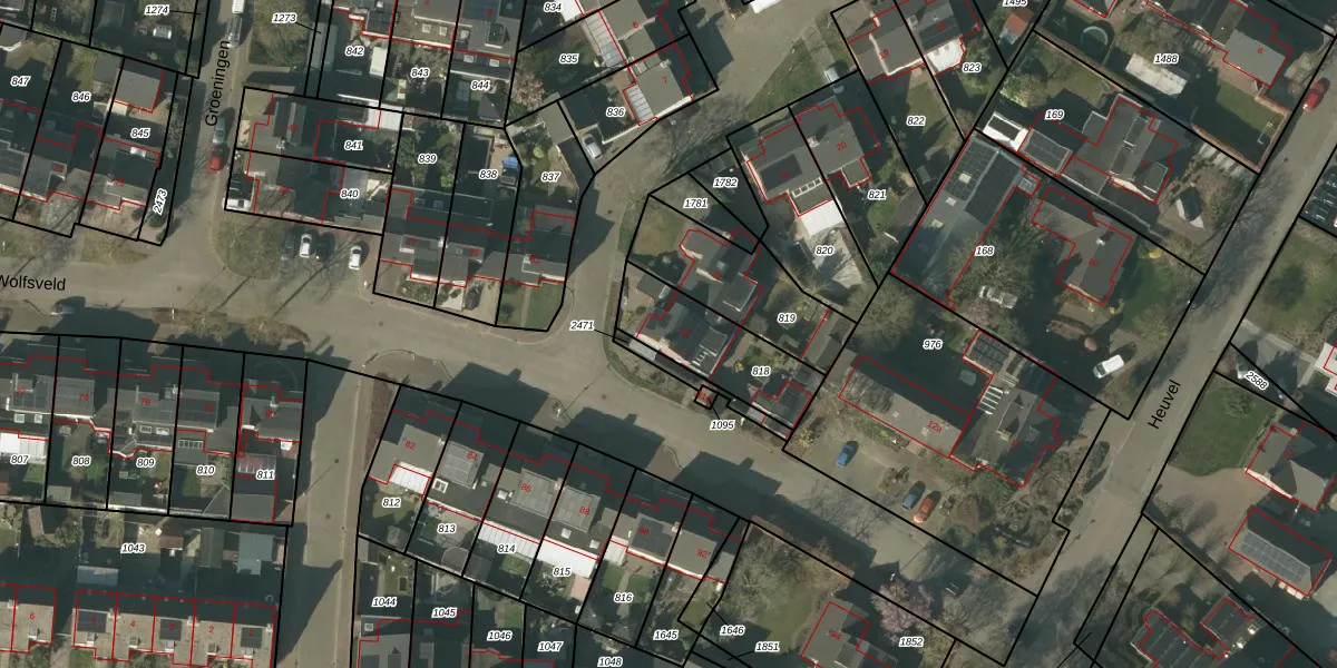 Gebruik de zoekbalk of klik op een perceel voor informatie over de adressen binnen dit perceel.