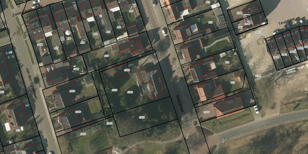 Sluisstraat 54 is gelegen op kadastraal perceel SMR02T1551. Deze kadastrale aanduiding is uniek en wordt gebruikt door het Kadaster om eigendomsrechten en andere zakelijke rechten vast te leggen. Het perceel maakt onderdeel uit van de kadastrale gemeente Someren.