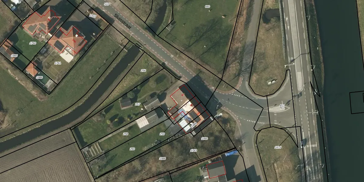 Het perceel waarop Sluisstraat 96 staat heeft een oppervlakte van 1100 m². Dit is een zeer groot perceel. De perceeloppervlakte wordt geregistreerd door het Kadaster. Gedetailleerde informatie over de maten van dit perceel kunt u vinden in het rapport Kadastrale kaart met maatvoering van Sluisstraat 96.