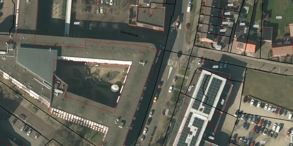 Het perceel waarop Sonnehove 11 staat heeft een oppervlakte van 1,2 ha. Dit is een zeer groot perceel. De perceeloppervlakte wordt geregistreerd door het Kadaster. Gedetailleerde informatie over de maten van dit perceel kunt u vinden in het rapport Kadastrale kaart met maatvoering van Sonnehove 11.