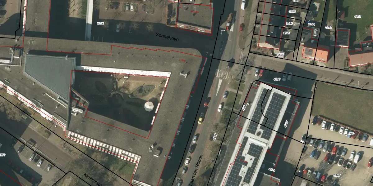 Het perceel waarop Sonnehove 16 staat heeft een oppervlakte van 1,2 ha. Dit is een zeer groot perceel. De perceeloppervlakte wordt geregistreerd door het Kadaster. Gedetailleerde informatie over de maten van dit perceel kunt u vinden in het rapport Kadastrale kaart met maatvoering van Sonnehove 16.