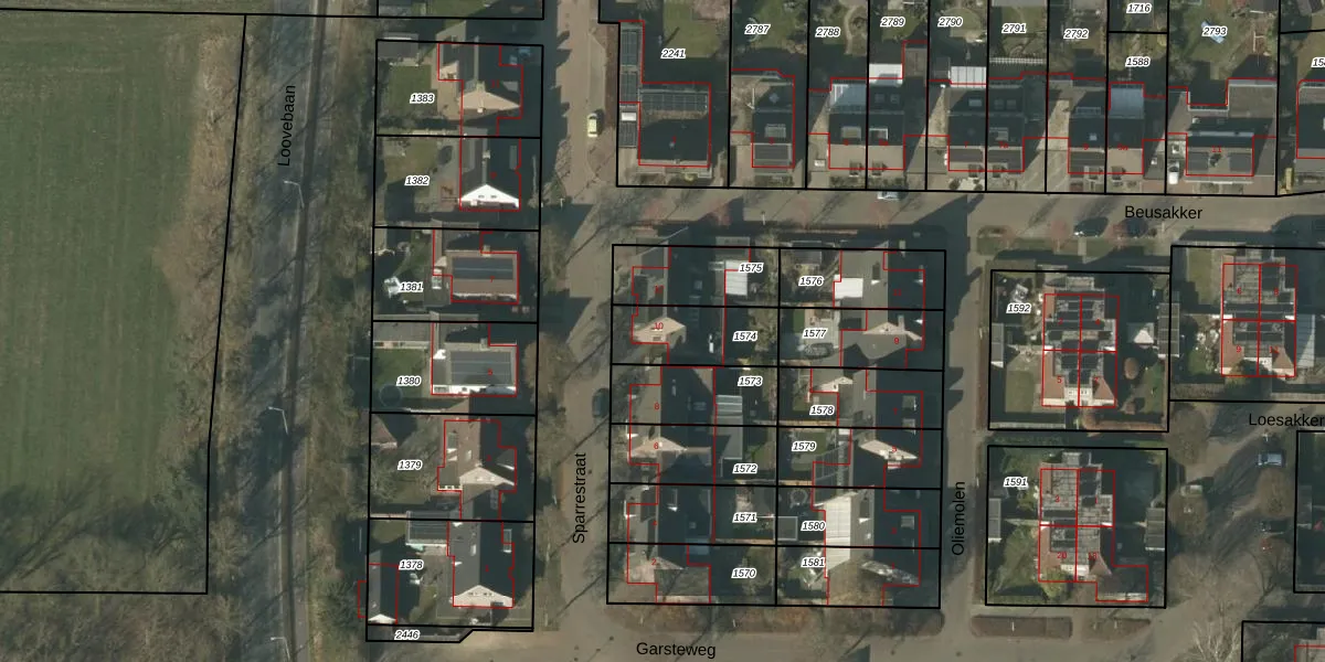 Gebruik de zoekbalk of klik op een perceel voor informatie over de adressen binnen dit perceel.