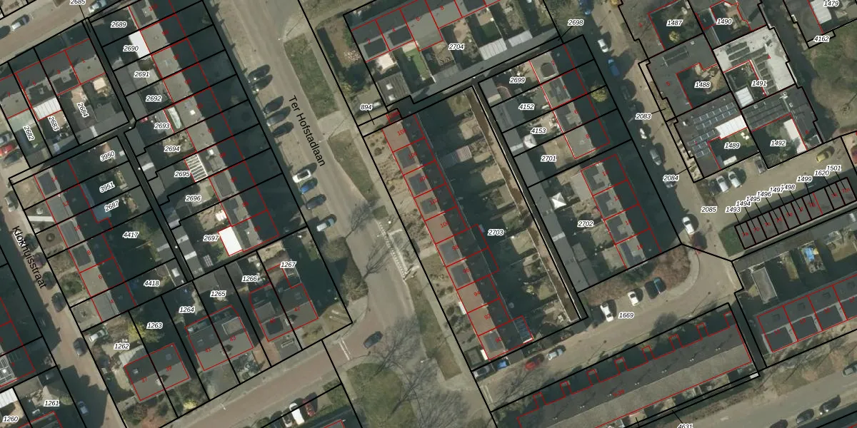 Ter Hofstadlaan 102 is gelegen op kadastraal perceel SMR02H2703. Deze kadastrale aanduiding is uniek en wordt gebruikt door het Kadaster om eigendomsrechten en andere zakelijke rechten vast te leggen. Het perceel maakt onderdeel uit van de kadastrale gemeente Someren.