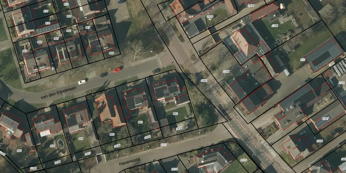Gebruik de zoekbalk of klik op een perceel voor informatie over de adressen binnen dit perceel.