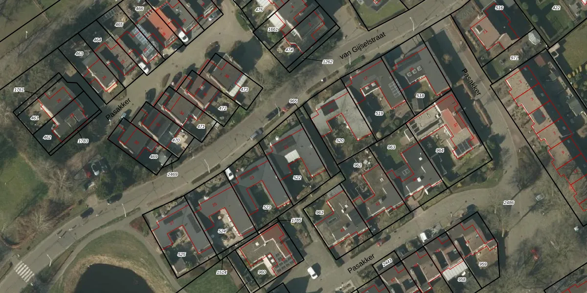 Gebruik de zoekbalk of klik op een perceel voor informatie over de adressen binnen dit perceel.