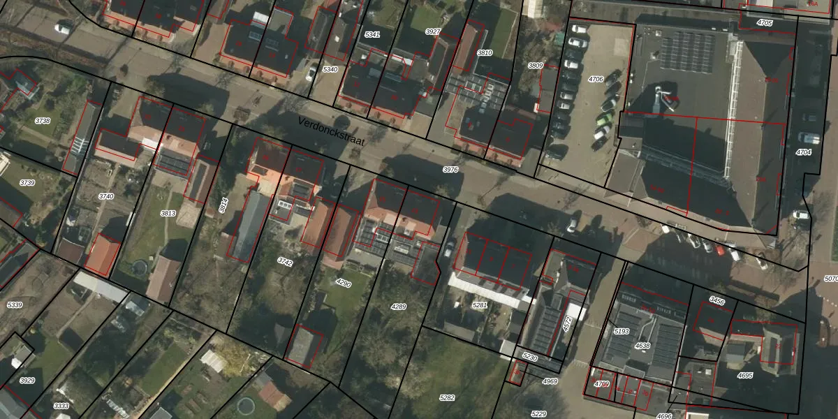 Het perceel waarop Verdonckstraat 13 staat heeft een oppervlakte van 727 m². Dit is een groot perceel. De perceeloppervlakte wordt geregistreerd door het Kadaster. Gedetailleerde informatie over de maten van dit perceel kunt u vinden in het rapport Kadastrale kaart met maatvoering van Verdonckstraat 13.