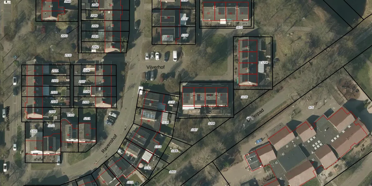 Het perceel waarop Vijverhof 1 staat heeft een oppervlakte van 569 m². Dit is een groot perceel. De perceeloppervlakte wordt geregistreerd door het Kadaster. Gedetailleerde informatie over de maten van dit perceel kunt u vinden in het rapport Kadastrale kaart met maatvoering van Vijverhof 1.