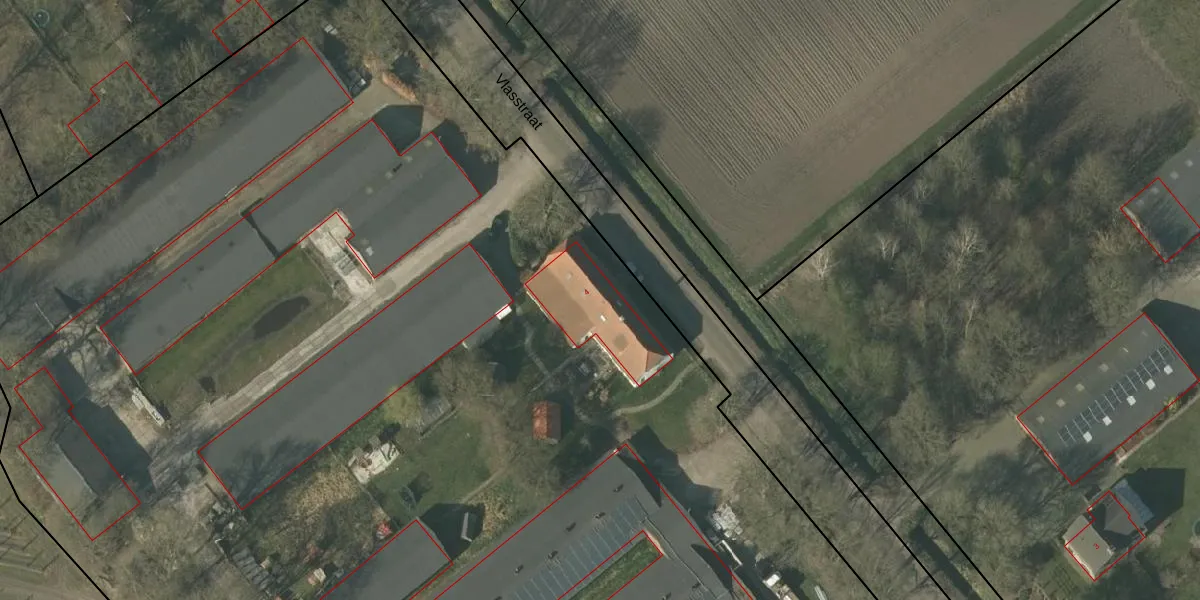Het perceel waarop Vlasstraat 4 staat heeft een oppervlakte van 2,1 ha. Dit is een zeer groot perceel. De perceeloppervlakte wordt geregistreerd door het Kadaster. Gedetailleerde informatie over de maten van dit perceel kunt u vinden in het rapport Kadastrale kaart met maatvoering van Vlasstraat 4.
