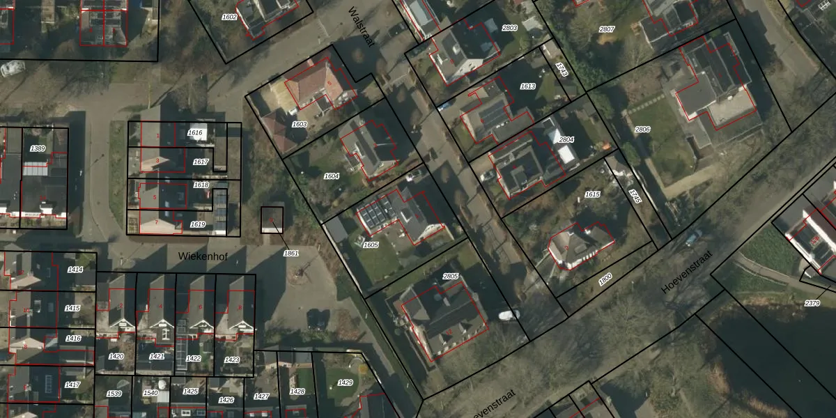 Gebruik de zoekbalk of klik op een perceel voor informatie over de adressen binnen dit perceel.
