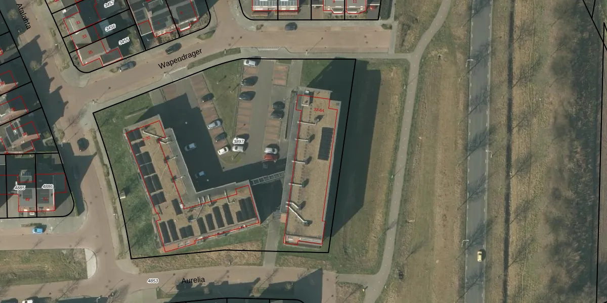 Het perceel waarop Wapendrager 62 staat heeft een oppervlakte van 4512 m². Dit is een zeer groot perceel. De perceeloppervlakte wordt geregistreerd door het Kadaster. Gedetailleerde informatie over de maten van dit perceel kunt u vinden in het rapport Kadastrale kaart met maatvoering van Wapendrager 62.