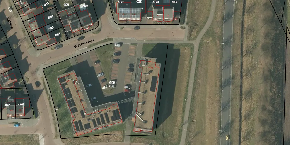 Wapendrager 64 is gelegen op kadastraal perceel SMR02H3897. Deze kadastrale aanduiding is uniek en wordt gebruikt door het Kadaster om eigendomsrechten en andere zakelijke rechten vast te leggen. Het perceel maakt onderdeel uit van de kadastrale gemeente Someren.