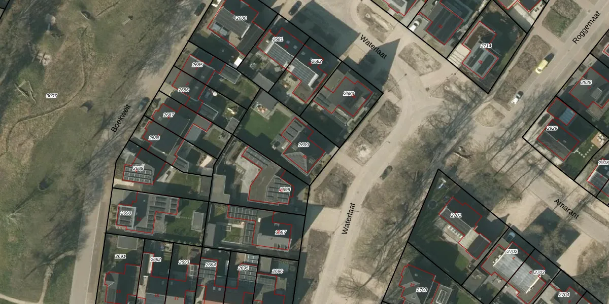 Het perceel waarop Waterlaat 40 staat heeft een oppervlakte van 541 m². Dit is een groot perceel. De perceeloppervlakte wordt geregistreerd door het Kadaster. Gedetailleerde informatie over de maten van dit perceel kunt u vinden in het rapport Kadastrale kaart met maatvoering van Waterlaat 40.
