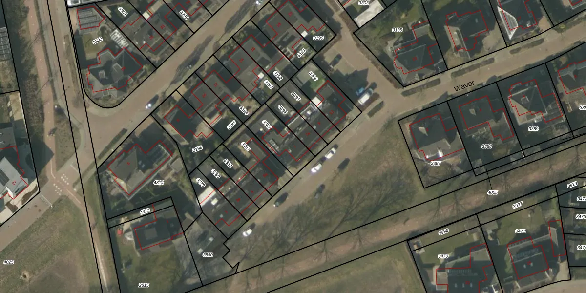 Het perceel waarop Waver 7 staat heeft een oppervlakte van 252 m². Dit is een middelgroot perceel. De perceeloppervlakte wordt geregistreerd door het Kadaster. Gedetailleerde informatie over de maten van dit perceel kunt u vinden in het rapport Kadastrale kaart met maatvoering van Waver 7.