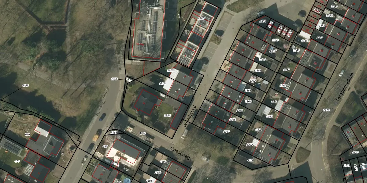 Gebruik de zoekbalk of klik op een perceel voor informatie over de adressen binnen dit perceel.