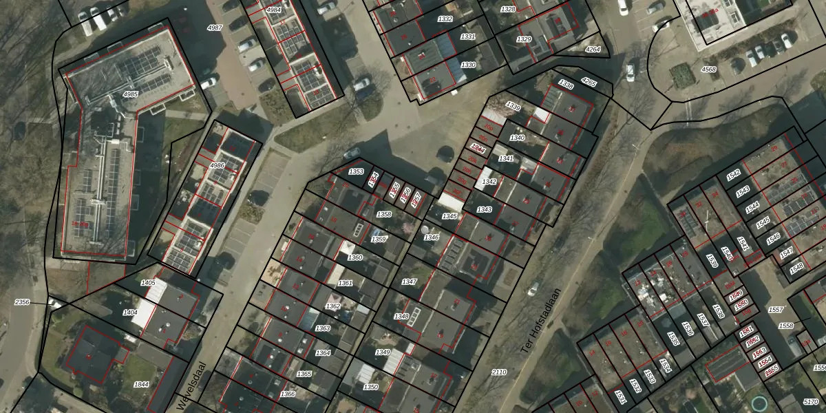 Gebruik de zoekbalk of klik op een perceel voor informatie over de adressen binnen dit perceel.