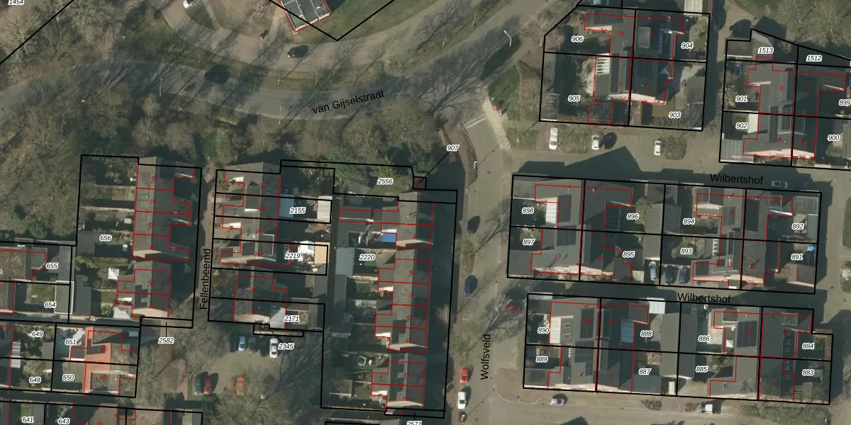 Het perceel waarop Wolfsveld 2 staat heeft een oppervlakte van 1968 m². Dit is een zeer groot perceel. De perceeloppervlakte wordt geregistreerd door het Kadaster. Gedetailleerde informatie over de maten van dit perceel kunt u vinden in het rapport Kadastrale kaart met maatvoering van Wolfsveld 2.