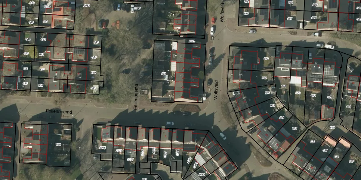 Het perceel waarop Wolfsveld 26 staat heeft een oppervlakte van 968 m². Dit is een groot perceel. De perceeloppervlakte wordt geregistreerd door het Kadaster. Gedetailleerde informatie over de maten van dit perceel kunt u vinden in het rapport Kadastrale kaart met maatvoering van Wolfsveld 26.