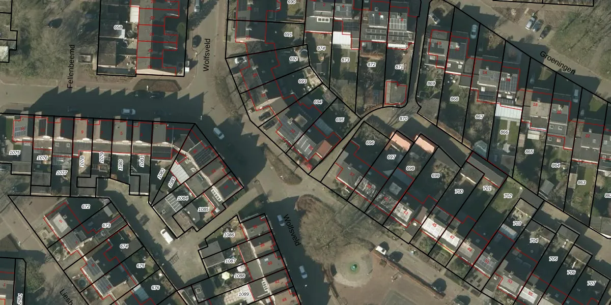 Gebruik de zoekbalk of klik op een perceel voor informatie over de adressen binnen dit perceel.