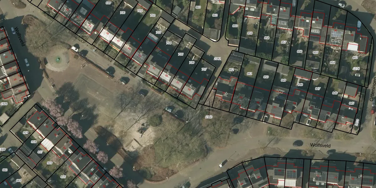 Het perceel waarop Wolfsveld 59 staat heeft een oppervlakte van 259 m². Dit is een middelgroot perceel. De perceeloppervlakte wordt geregistreerd door het Kadaster. Gedetailleerde informatie over de maten van dit perceel kunt u vinden in het rapport Kadastrale kaart met maatvoering van Wolfsveld 59.