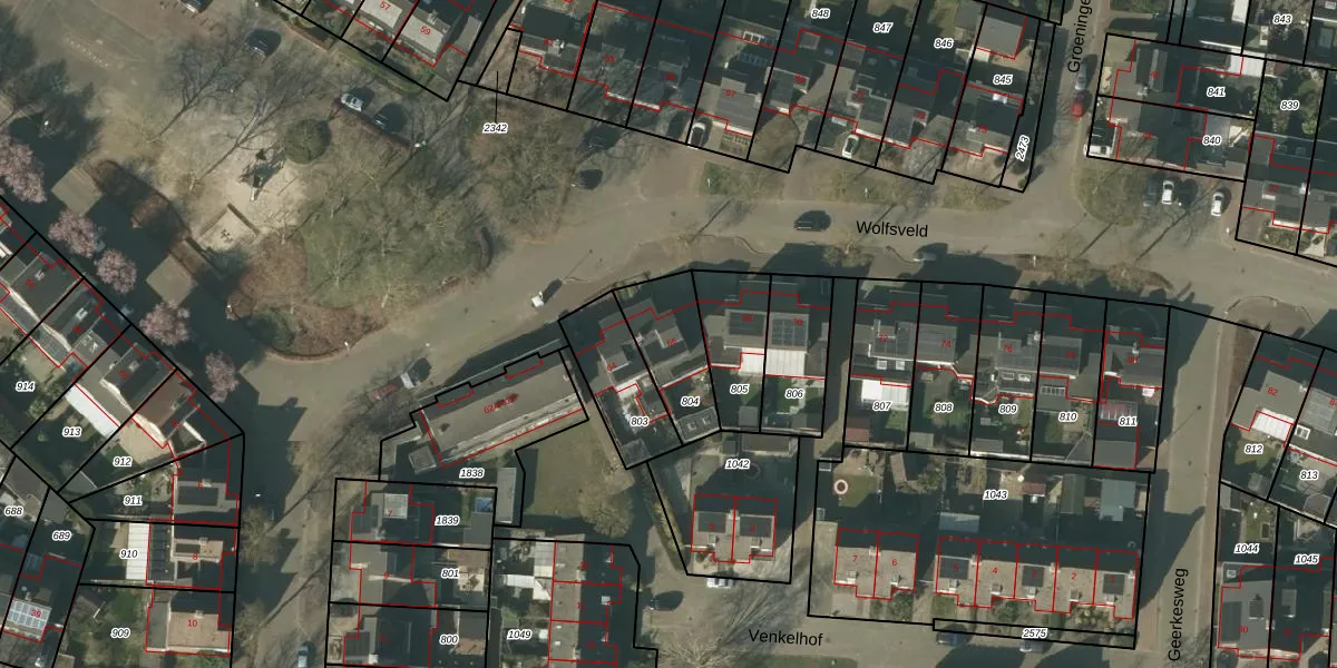 Het perceel waarop Wolfsveld 66 staat heeft een oppervlakte van 225 m². Dit is een middelgroot perceel. De perceeloppervlakte wordt geregistreerd door het Kadaster. Gedetailleerde informatie over de maten van dit perceel kunt u vinden in het rapport Kadastrale kaart met maatvoering van Wolfsveld 66.