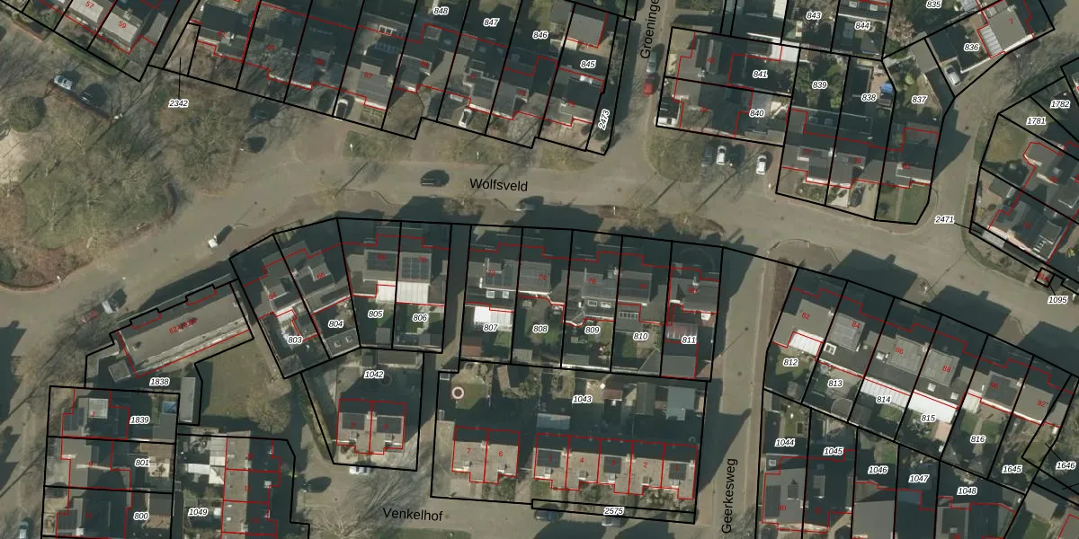 Gebruik de zoekbalk of klik op een perceel voor informatie over de adressen binnen dit perceel.