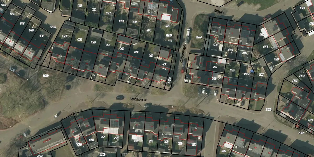 Het perceel waarop Wolfsveld 75 staat heeft een oppervlakte van 237 m². Dit is een middelgroot perceel. De perceeloppervlakte wordt geregistreerd door het Kadaster. Gedetailleerde informatie over de maten van dit perceel kunt u vinden in het rapport Kadastrale kaart met maatvoering van Wolfsveld 75.