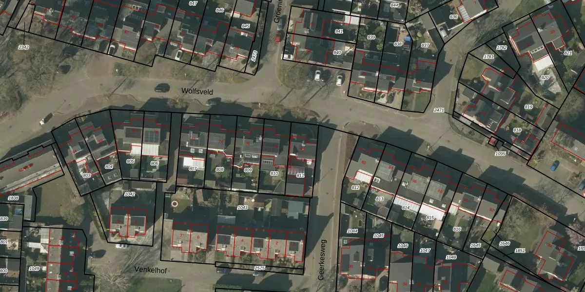 Gebruik de zoekbalk of klik op een perceel voor informatie over de adressen binnen dit perceel.