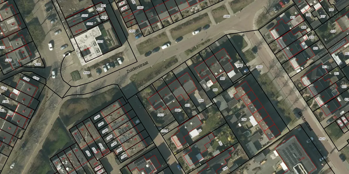 Gebruik de zoekbalk of klik op een perceel voor informatie over de adressen binnen dit perceel.
