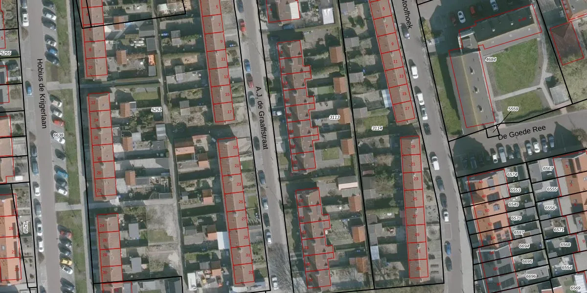 Het perceel waarop A.J. de Graaffstraat 18 staat heeft een oppervlakte van 3085 m². Dit is een zeer groot perceel. De perceeloppervlakte wordt geregistreerd door het Kadaster. Gedetailleerde informatie over de maten van dit perceel kunt u vinden in het rapport Kadastrale kaart met maatvoering van A.J. de Graaffstraat 18.