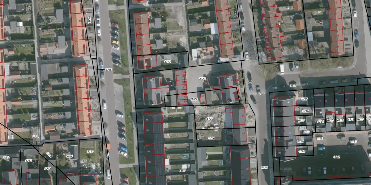 Het perceel waarop het adres ligt is SMD00-B-3723. De afkorting 'SMD00' staat voor kadastrale gemeente Sommelsdijk. De gemiddelde perceelgrootte in Sommelsdijk is 5164,52 m². Dit perceel is kleiner: de perceeloppervlakte bedraagt 955 m². Het grootste perceel in de kadastrale gemeente is 55,8 ha. Het kleinste perceel heeft een oppervlakte van 1 m². Op het perceel liggen in totaal 11 adressen. In de Basisregistratie Kadaster (BRK) werden de grenzen van het perceel geregistreerd op 19-12-2001.