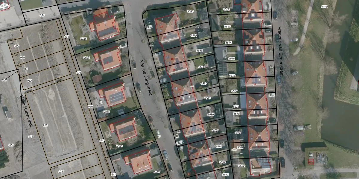 Het perceel waarop A.M. de Jongstraat 14 staat heeft een oppervlakte van 289 m². Dit is een middelgroot perceel. De perceeloppervlakte wordt geregistreerd door het Kadaster. Gedetailleerde informatie over de maten van dit perceel kunt u vinden in het rapport Kadastrale kaart met maatvoering van A.M. de Jongstraat 14.