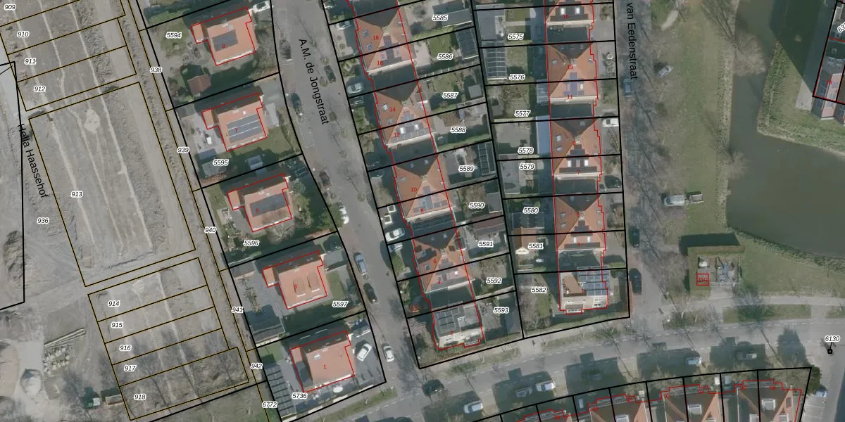 A.M. de Jongstraat 8 is gelegen op kadastraal perceel SMD00B5590. Deze kadastrale aanduiding is uniek en wordt gebruikt door het Kadaster om eigendomsrechten en andere zakelijke rechten vast te leggen. Het perceel maakt onderdeel uit van de kadastrale gemeente Sommelsdijk.