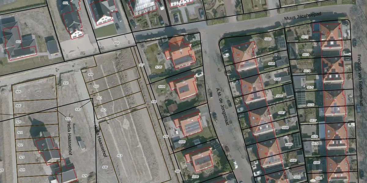 Het perceel waarop A.M. de Jongstraat 9 staat heeft een oppervlakte van 570 m². Dit is een groot perceel. De perceeloppervlakte wordt geregistreerd door het Kadaster. Gedetailleerde informatie over de maten van dit perceel kunt u vinden in het rapport Kadastrale kaart met maatvoering van A.M. de Jongstraat 9.
