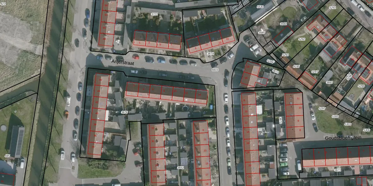 Het perceel waarop Anjerstraat 12 staat heeft een oppervlakte van 2125 m². Dit is een zeer groot perceel. De perceeloppervlakte wordt geregistreerd door het Kadaster. Gedetailleerde informatie over de maten van dit perceel kunt u vinden in het rapport Kadastrale kaart met maatvoering van Anjerstraat 12.