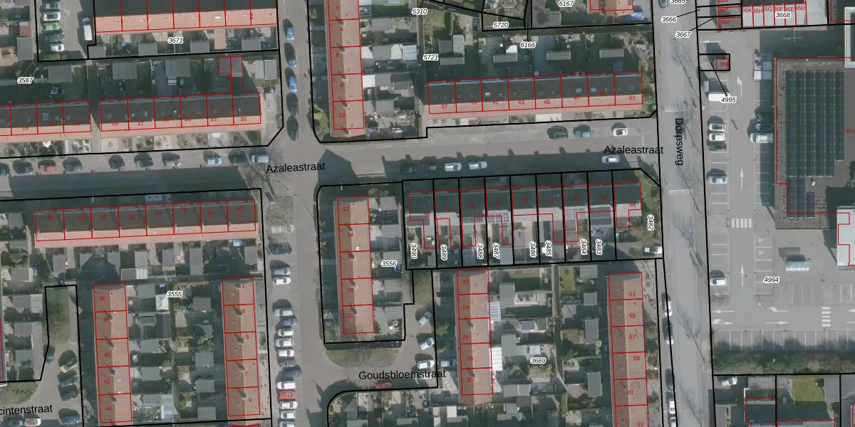 Azaleastraat 42 is gelegen op kadastraal perceel SMD00B3490. Deze kadastrale aanduiding is uniek en wordt gebruikt door het Kadaster om eigendomsrechten en andere zakelijke rechten vast te leggen. Het perceel maakt onderdeel uit van de kadastrale gemeente Sommelsdijk.