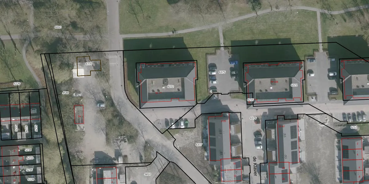 de Klaver 65 is gelegen op kadastraal perceel SMD00B6222. Deze kadastrale aanduiding is uniek en wordt gebruikt door het Kadaster om eigendomsrechten en andere zakelijke rechten vast te leggen. Het perceel maakt onderdeel uit van de kadastrale gemeente Sommelsdijk.