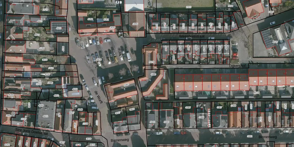 Het perceel waarop de Wurft 19 staat heeft een oppervlakte van 370 m². Dit is een groot perceel. De perceeloppervlakte wordt geregistreerd door het Kadaster. Gedetailleerde informatie over de maten van dit perceel kunt u vinden in het rapport Kadastrale kaart met maatvoering van de Wurft 19.