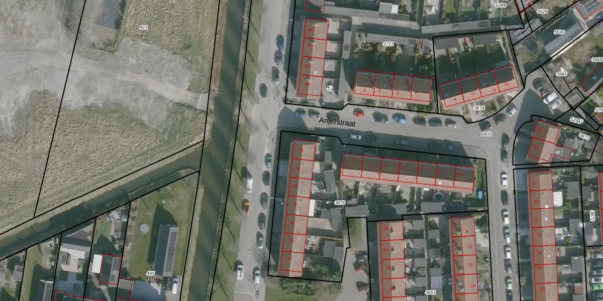 Het adres ligt op het perceel SMD00-B-3676, dat zich in de kadastrale gemeente Sommelsdijk bevindt. De gemiddelde perceelgrootte in Sommelsdijk is 5164,52 m². Dit perceel is kleiner: de perceeloppervlakte bedraagt 2125 m². De grootste perceeloppervlakte in de kadastrale gemeente is 55,8 ha. De kleinste oppervlakte bedraagt 1 m². Op het perceel liggen in totaal 14 adressen. In de Basisregistratie Kadaster (BRK) werden de grenzen van het perceel geregistreerd op 12-05-2006.