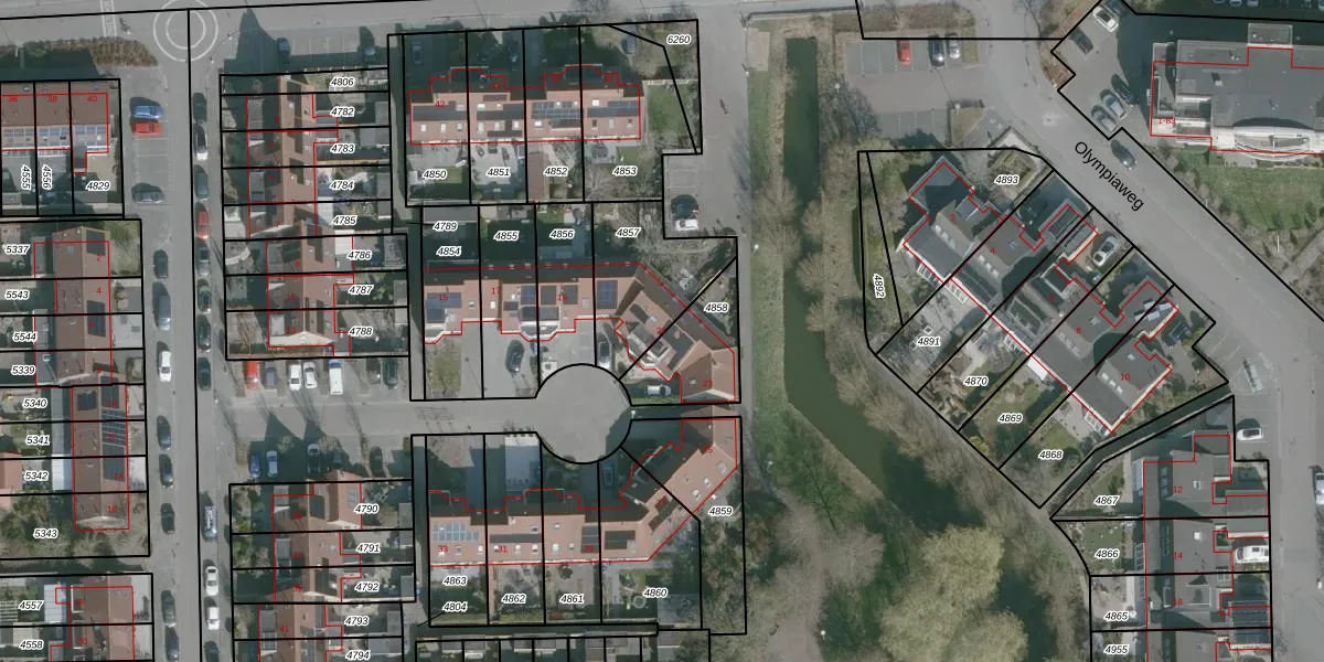 Gebruik de zoekbalk of klik op een perceel voor informatie over de adressen binnen dit perceel.
