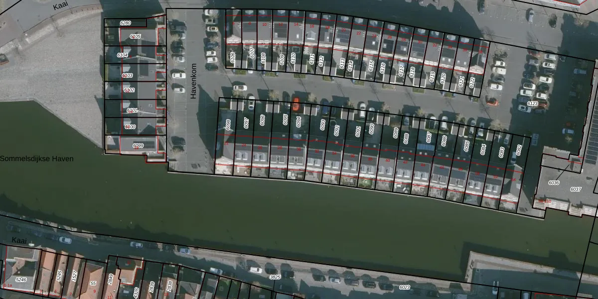 Havenkom 30 is gelegen op kadastraal perceel SMD00B6094. Deze kadastrale aanduiding is uniek en wordt gebruikt door het Kadaster om eigendomsrechten en andere zakelijke rechten vast te leggen. Het perceel maakt onderdeel uit van de kadastrale gemeente Sommelsdijk.