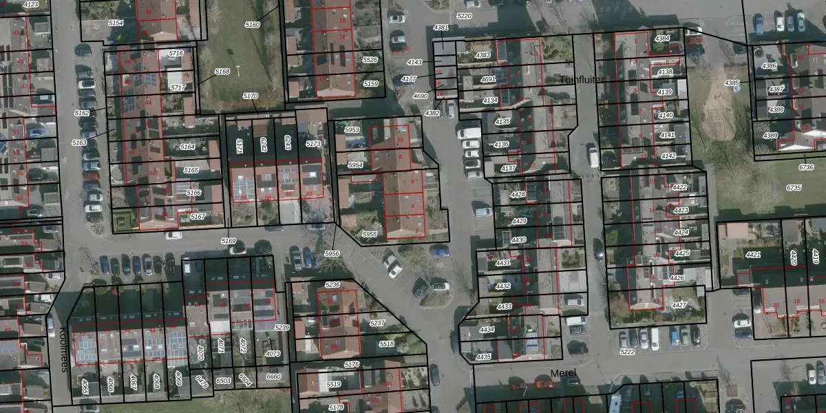 Het perceel waarop Koolmees 4 staat heeft een oppervlakte van 434 m². Dit is een groot perceel. De perceeloppervlakte wordt geregistreerd door het Kadaster. Gedetailleerde informatie over de maten van dit perceel kunt u vinden in het rapport Kadastrale kaart met maatvoering van Koolmees 4.