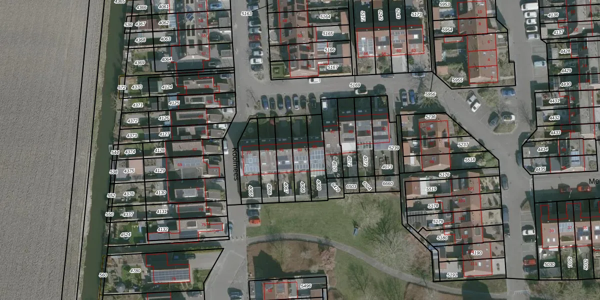 Het perceel waarop Koolmees 83 staat heeft een oppervlakte van 155 m². Dit is een middelgroot perceel. De perceeloppervlakte wordt geregistreerd door het Kadaster. Gedetailleerde informatie over de maten van dit perceel kunt u vinden in het rapport Kadastrale kaart met maatvoering van Koolmees 83.