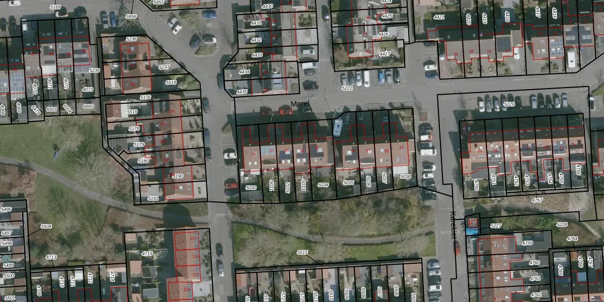 Het perceel waarop Merel 33 staat heeft een oppervlakte van 143 m². Dit is een middelgroot perceel. De perceeloppervlakte wordt geregistreerd door het Kadaster. Gedetailleerde informatie over de maten van dit perceel kunt u vinden in het rapport Kadastrale kaart met maatvoering van Merel 33.