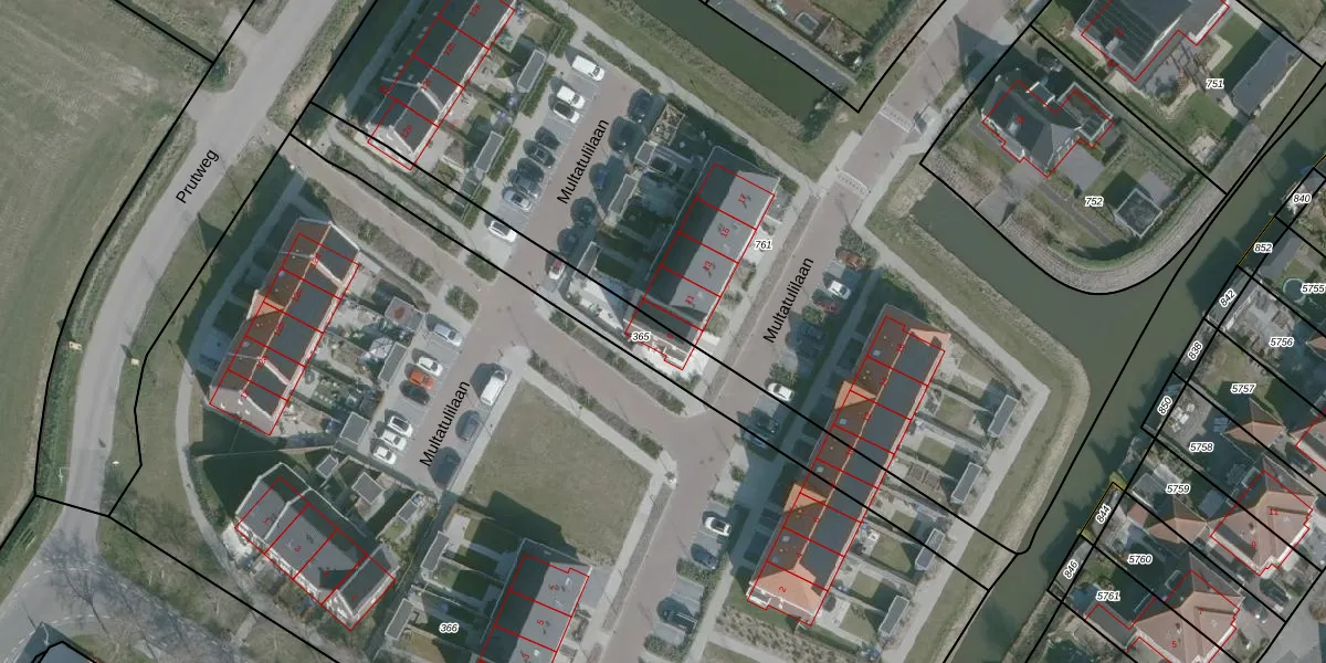 Het perceel waarop Multatulilaan 9 staat heeft een oppervlakte van 800 m². Dit is een groot perceel. De perceeloppervlakte wordt geregistreerd door het Kadaster. Gedetailleerde informatie over de maten van dit perceel kunt u vinden in het rapport Kadastrale kaart met maatvoering van Multatulilaan 9.