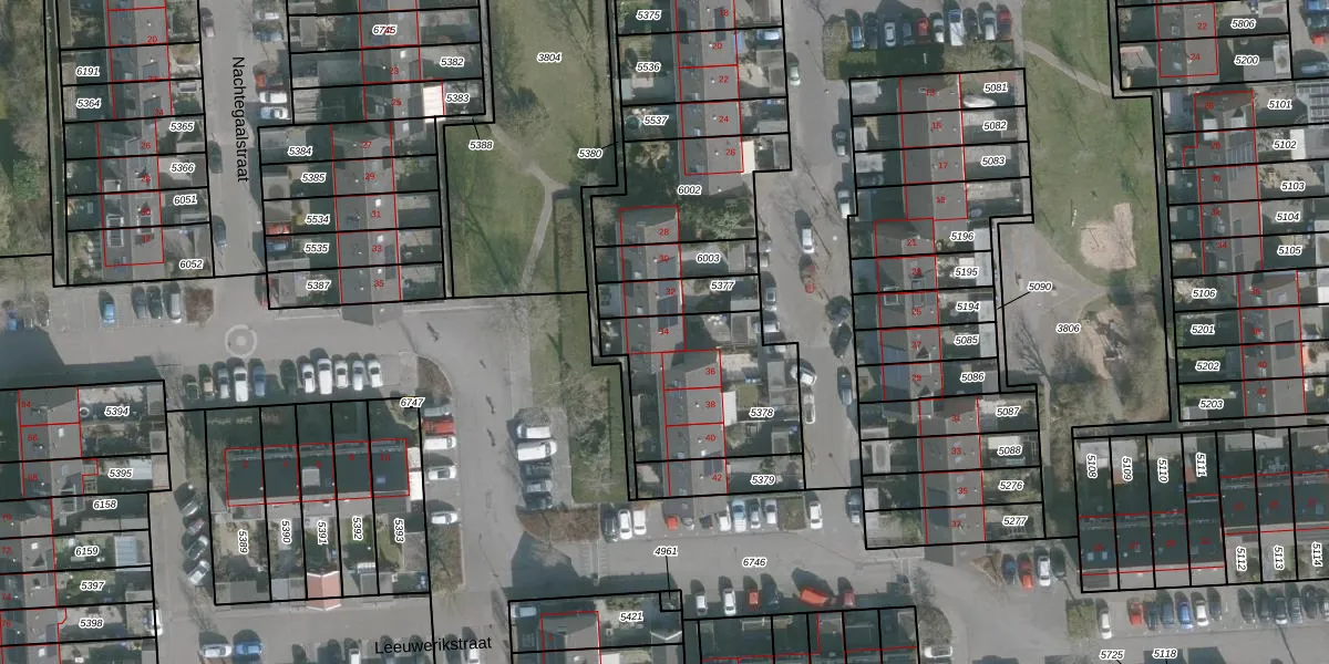 Het perceel waarop Patrijsstraat 34 staat heeft een oppervlakte van 550 m². Dit is een groot perceel. De perceeloppervlakte wordt geregistreerd door het Kadaster. Gedetailleerde informatie over de maten van dit perceel kunt u vinden in het rapport Kadastrale kaart met maatvoering van Patrijsstraat 34.