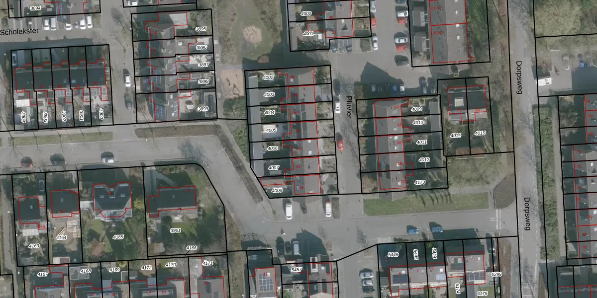 Het perceel waarop Pluvier 42 staat heeft een oppervlakte van 174 m². Dit is een middelgroot perceel. De perceeloppervlakte wordt geregistreerd door het Kadaster. Gedetailleerde informatie over de maten van dit perceel kunt u vinden in het rapport Kadastrale kaart met maatvoering van Pluvier 42.