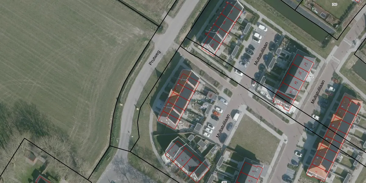 Het perceel waarop Prutweg 12-c staat heeft een oppervlakte van 7825 m². Dit is een zeer groot perceel. De perceeloppervlakte wordt geregistreerd door het Kadaster. Gedetailleerde informatie over de maten van dit perceel kunt u vinden in het rapport Kadastrale kaart met maatvoering van Prutweg 12-c.