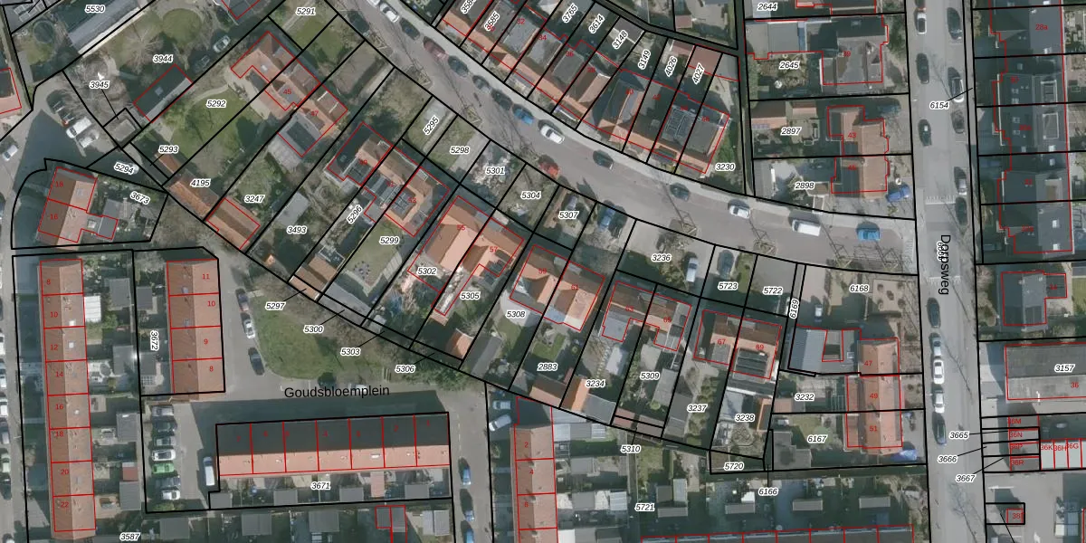 Gebruik de zoekbalk of klik op een perceel voor informatie over de adressen binnen dit perceel.