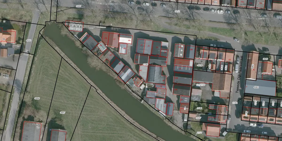 Het perceel waarop Sluishoek 24 staat heeft een oppervlakte van 3615 m². Dit is een zeer groot perceel. De perceeloppervlakte wordt geregistreerd door het Kadaster. Gedetailleerde informatie over de maten van dit perceel kunt u vinden in het rapport Kadastrale kaart met maatvoering van Sluishoek 24.