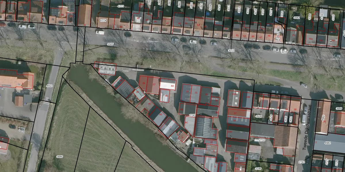 Het perceel waarop Sluishoek 26 staat heeft een oppervlakte van 3615 m². Dit is een zeer groot perceel. De perceeloppervlakte wordt geregistreerd door het Kadaster. Gedetailleerde informatie over de maten van dit perceel kunt u vinden in het rapport Kadastrale kaart met maatvoering van Sluishoek 26.